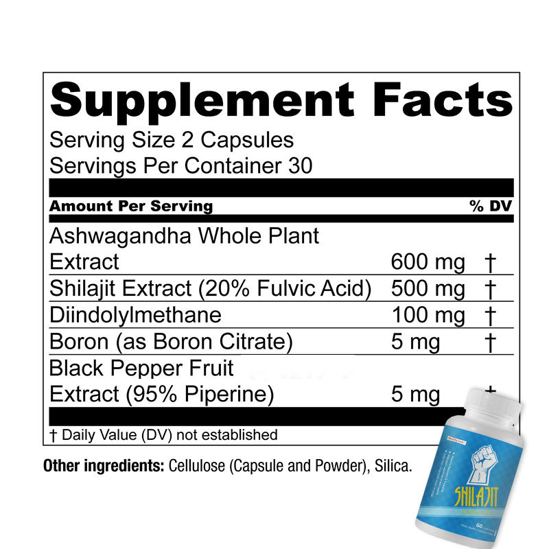 مخفض الإجهاد اليومي ودعم اللياقة البدنية: يساعد إدراج أشواغاندا وشيلاجيت على دعم كتلة العضلات مع تقليل الإجهاد اليومي العادي الذي يمكن أن يعيق التدريبات في بعض الأحيان.*