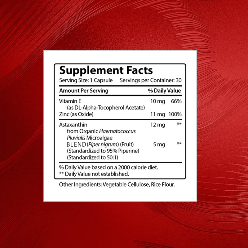 تعظيم الإمكانات - فيتامين (إي) والزنك والبيوبيرين جميعها لها خصائص تضخم فوائد الأستاكسانثين وتزيد من تأثيرها.