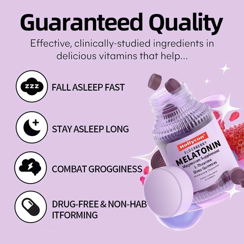 Our premium sleep gummies feature a science-backed formulation with 5mg of Melatonin per serving to support natural sleep-wake cycles, helping you fall asleep, stay asleep, and wake up feeling refreshed.